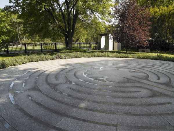 The Cathedral Labyrinth and Sacred Garden was conceived by Jane Owen in 1995 and designed and completed by architect and Purdue University Professor Emeritus Kent Schuette in 1996. It is a very close replica of the labyrinth in Chartres Cathedral in France.