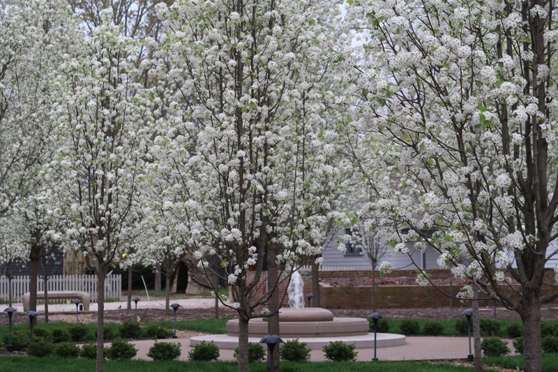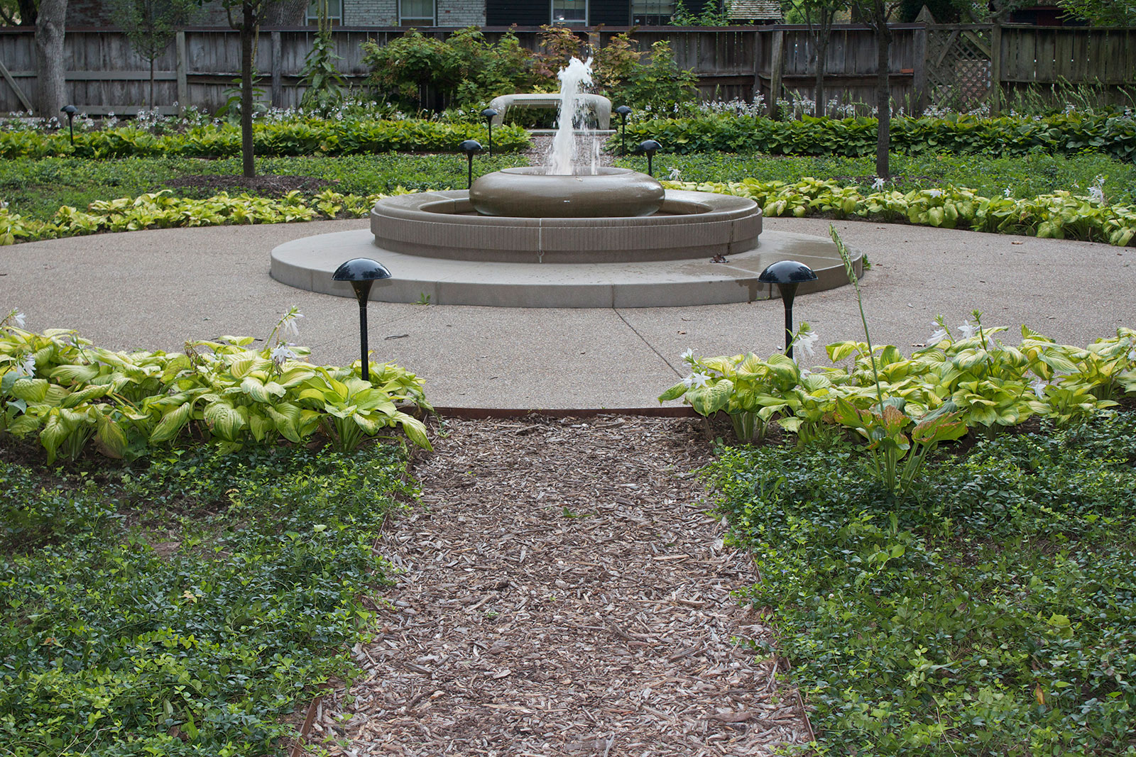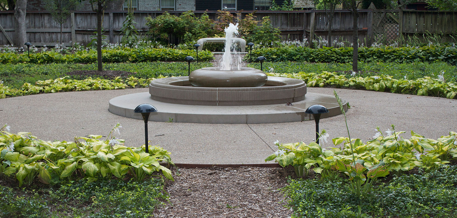 Central to Carol’s Garden is the Fountain of Life, a limestone work by sculptor David Rogers of Bloomington, Indiana. The two accompanying limestone benches were also made by Rogers. Visitors are encouraged to take time to absorb the serenity the garden offers.